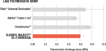 Alle kleuren van CLEARFIL MAJESTY ES-2 Universal hebben dezelfde mechanische eigenschappen.