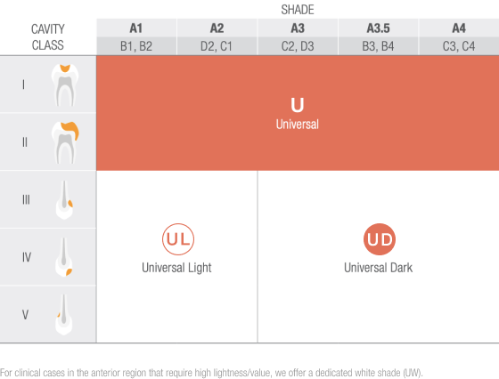 1 TOON TAGAHAMMASTE RESTAURATSIOONIDEKS Kõigi tagumiste restauratsioonide puhul saab kasutada ühte universaalset tooni (U).