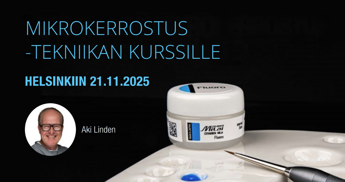 CERABIEN™ MiLai on uusi mikrokerrostusmateriaali zirkoniumille ja litiumdisilikaatille, varta vasten kehitetty läpikuultaville materiaaleille ohuisiin kerrospaksuuksiin. Tulet sitten kurssille oppimaan uutta tai vahvistamaan tietämystäsi – tämä on oikeaa paikka sinulle. Kouluttaja toimii Htm Aki Linden. Kurssilla valmistamme kaksi etualueen kruunua, toisen kruunun teemme lasikeramiasta ja toisen zirkoniumista. Opimme miten saamme sävyt sopimaan helposti ja nopeasi yhteen kahden eri pohjamateriaalin kanssa.