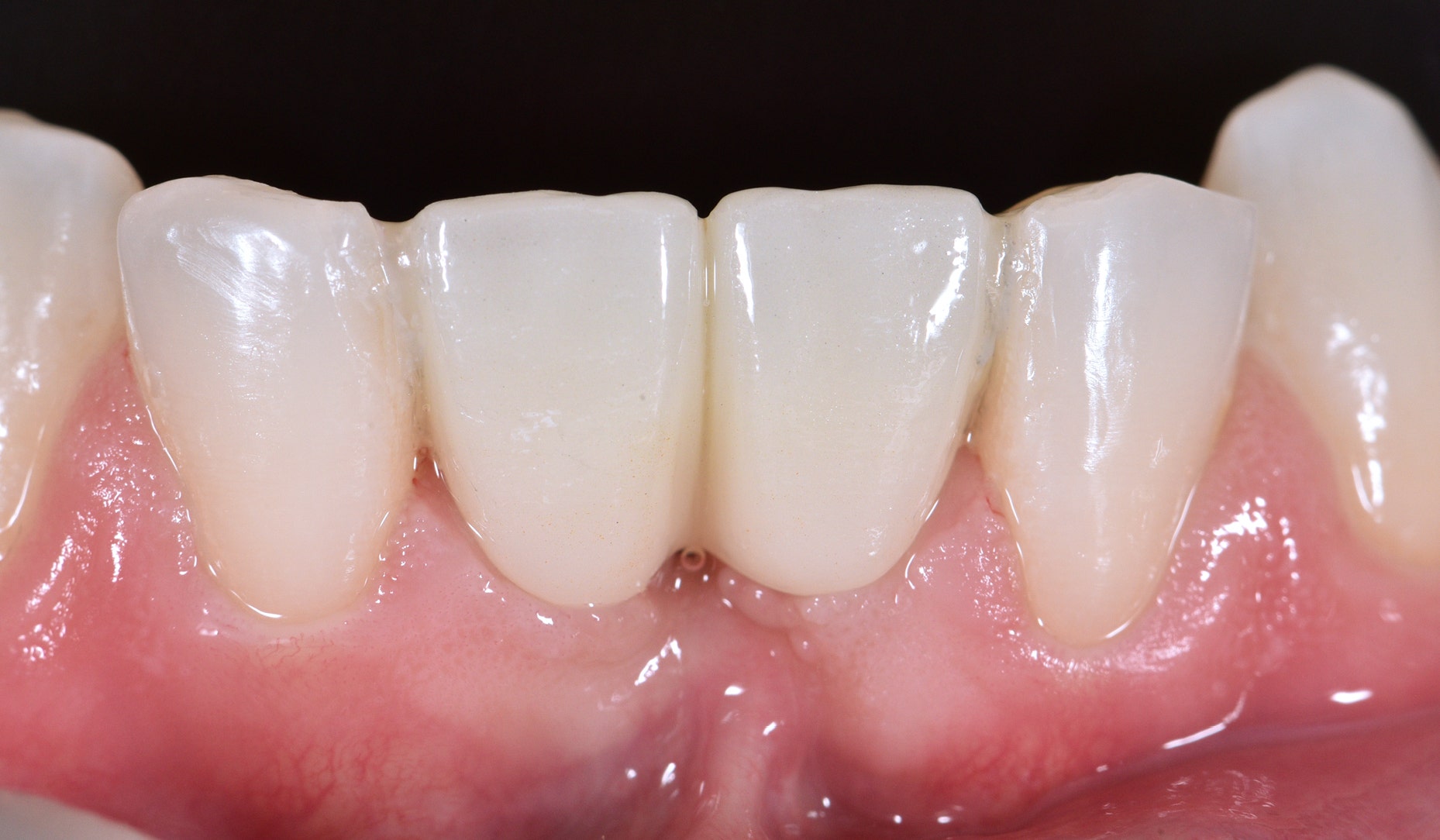 News Feature Optimizing design and shade: Replacement of a resin-bonded bridge for aesthetic reasons Article by doctors Tom Boujenah and Olivier Boujenah. KEEP IT SIMPLE WHILE MEETING THE PATIENT’S INDIVIDUAL DEMANDS Every day in our practices, we are faced with a choice between different treatment options. Experience, scientific literature, and patient preferences all help guide us toward one direction or another. The case presented below could have been managed using a different approach, but the chosen solution aligned with our philosophy: keep it simple while meeting the patient’s individual demands. A PATIENT WITH HIGH AESTHETIC DEMANDS A young patient, in his early twenties, presented for consultation with a purely aesthetic concern. He had been wearing a double-retainer resin-bonded fixed dental prosthesis (Maryland bridge) (Figure 1) for several years, placed due to the congenital absence of the mandibular central incisors. Although the bridge had served him well functionally, the patient now wished to replace it with a more aesthetic solution, better matching the current shade of his natural teeth. After clinical and radiographic assessment, several treatment options were considered, taking into account the patient’s age, bone volume, and aesthetic expectations. The final decision was to fabricate a new resin-bonded bridge, optimized in terms of both design and shade, using a multilayered zirconia to achieve a natural-looking result. Fig. 1. Initial situation Fig. 2. iTero 5D+ optical scan PRELIMINARY STEPS IN THE DENTAL OFFICE A pre-treatment impression of the bridge was taken before removal, using the iTero 5D+ scanner (Align Technology; Figure 2). These pre-treatment scans, which are performed almost systematically for our prosthetic reconstructions, allow the laboratory to capture the volume of the existing prosthesis, replicate the previous shape (if suitable), and often visualize wear facets. This helps minimize or even eliminate the need for subsequent adjustments. Then, the existing resin-bonded bridge was removed, and the abutment teeth were prepared as minimally invasive as possible. Once again, the intraoral scanner was used to take an impression of the situation (Figure 3). Fig. 3. Impression after bridge removal and minimal preparation of the lingual surfaces PRODUCTION OF THE RESIN-BONDED BRIDGE The scan was sent directly from the intraoral scanner to the Design4me platform (a 3D design platform) to carry out the digital design of the planned bridge (Figures 4 and 5). A repositioning key was also designed by the dental technicians to provide for accurate seating of the bridge during cementation (Figure 6). The material of choice was KATANA™ Zirconia YML, a multi-layered zirconia from Kuraray Noritake Dental Inc., shade B1. It seemed most appropriate due to its outstanding physical and aesthetic properties—specifically its gradient in shade translucency and flexural strength (Figure 7). Fig. 4. Design of the new bridge using exocad software (Design4me platform) Fig. 5. View of the soft tissue underneath the bridge showing slight gingival compression Fig. 6. Repositioning key designed using exocad software (Design4me platform) Fig. 7. KATANA™ Zirconia YML disc (shade shown not representative of the case presented) The production centre, DIGISMILE, subsequently received the STL files of the bridge and the positioning key, modeled by the dental technicians on the Design4me platform, ready for milling and printing. We also provided the laboratory with intraoral photos to replicate the surface texture, possible characterizations, and shades. The laboratory performed the milling of the bridge using a DWX-52D milling machine (Roland DG). Polishing, surface finishing, and staining were carried out using Komet burs and Miyo liquid porcelain (Jensen). The repositioning key, meanwhile, was 3D printed with a NextDent 5100 3D Printer (3D Systems) using surgical guide resin (Figure 8). Fig. 8. Milled bridge and 3D-printed key after polishing and staining DEFINITIVE PLACEMENT IN THE DENTAL OFFICE The adhesive cementation procedure is one of the most critical steps of the whole workflow. Once the bridge had arrived in the dental office and try-in was successfully completed, the focus was on moisture control and the establishment of ideal bonding conditions. In this context, strict working field isolation with saliva ejectors, cotton rolls, and ideally a rubber dam is essential, followed by the pre-treatment of the abutment teeth and the retainer wings of the zirconia bridge. PRE-TREATMENT OF THE TOOTH STRUCTURE Since the tooth preparations are strictly limited to enamel, the following conservative bonding protocol was adopted: Etching with phosphoric acid for 30 seconds on the enamel surfaces. Thorough rinsing with water, followed by gentle drying without desiccating the enamel. Application of PANAVIA™ V5 Tooth Primer (Kuraray Noritake Dental Inc.), followed by thorough drying with mild air after a 20-second waiting time. This primer contains MDP, which is essential for reliable enamel/zirconia adhesion. PRE-TREATMENT OF THE ZIRCONIA WINGS OF THE BRIDGE Even though the intaglio surface was sandblasted in the laboratory, it is crucial to repeat this step in the clinic: Cleaning with KATANA™ Cleaner (Kuraray Noritake Dental Inc.) for 10 seconds or ultrasonic cleaning for 5 minutes, followed by rinsing with water. Sandblasting with 50 μm aluminum oxide (Al2O3) at 2 bar. Application of CLEARFIL™ Ceramic Primer Plus (Kuraray Noritake Dental Inc.) to the intaglio surface without rinsing, followed by gentle drying. This primer also contains MDP, providing for a proper chemical bond to zirconia. ADHESIVE CEMENTATION With all surfaces pre-treated appropriately, adhesive cementation proceeded as follows: Application of PANAVIA™ V5 Paste (universal shade A2) to the intaglio of the bridge. Insertion of the bridge using the repositioning key. Light curing (“tack” cure) 