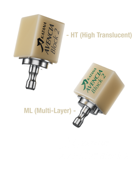 – KATANA AVENCIA Block 2 Multi-Layer (ML) est spécialement développé pour la fabrication de couronnes à l’esthétique naturelle,