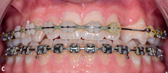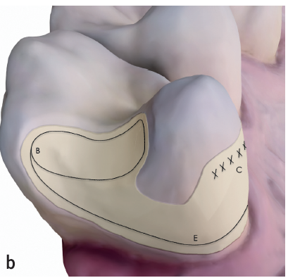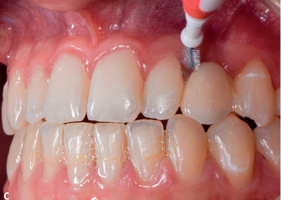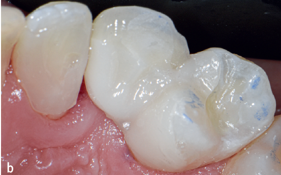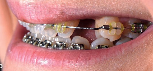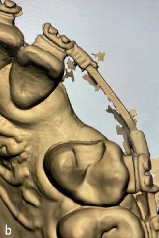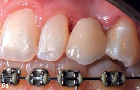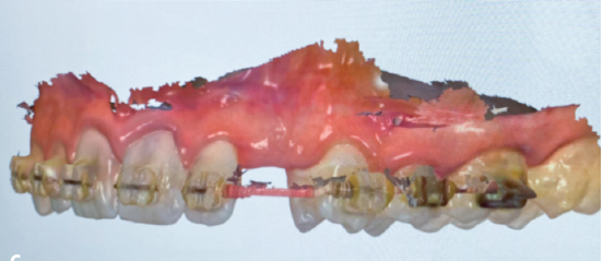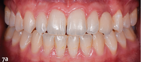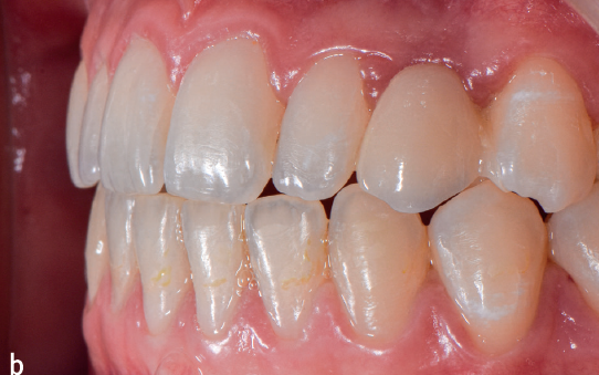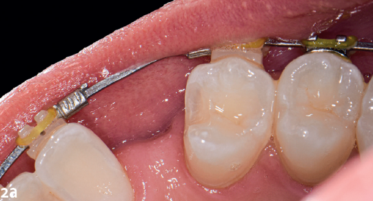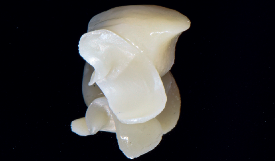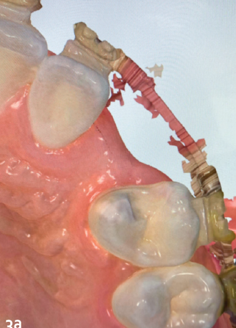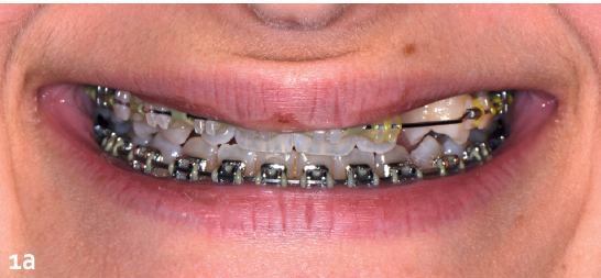Clinical Cases Bridge collé canin tout numérique : apport de la zircone multicouche BRIDGE COLLÉ CANIN TOUT NUMÉRIQUE : APPORT DE LA ZIRCONE MULTICOUCHE La gestion de l’édentement canin est toujours un défi difficile à relever, tant d’un point esthétique que fonctionnel. Nous présentons le cas d’une jeune patiente en fin de traitement orthodontique consultant dans le but de pallier l’agénésie de sa 23. Les nouvelles générations de zircone permettent une réalisation de ce cas par flux numérique complet, multi-attachesen place, alliant esthétique et résistance mécanique. Un suivi à 6 mois est présenté. Le remplacement prothétique d’une canine maxillaire chez l’adolescent est délicat en raison des fortes contraintes esthétiques et fonctionnelles. Cette clé de voûte de l’arcade est autant sollicitée dans le dessin de la ligne du sourireque dans le guidage en diduction et la protection des dents cuspidées. Son absence sur l’arcade peut résulter d’une anomalie d’éruption dentaire, d’un geste thérapeutique ou d’un contexte génétique comme une fente labio-palatine [1, 2]. Cependant, l’agénésie d’une canine supérieure est environ 10 fois plus rare que celle de l’incisive latérale (avec des prévalences respectives de 0,1 à 0,3 % contre 1,5 à 3,1 %) [1, 3]. À l’adolescence, le patient peut exprimer une demande esthétique qui requiert le remplacement de la dent manquante, la correction de l’alignement des dents ou des dysharmonies dento-faciales.Le praticien doit alors élaborer un plan de traitement, éventuellement multidisciplinaire, en s’appuyant notammentsur des examens complémentaires (radiographies et cires de diagnostic). Les éventuelles déficiences osseuses en regard de l’édentement sont évaluées dans les trois plans de l’espace. La première alternative orthodontique est alors de combler l’espace vacant en déplaçant une prémolaire maquillée en antérieur, ou d’augmenter l’espace vacant pour permettre une restauration prothétique [4].Si la croissance osseuse n’est pas finie, la solution implantaire pour le remplacement de la canine est prématurée.Par ailleurs, l’immaturité gingivale et le délabrement irréversible des préparations s’opposent à la réalisation d’un bridge scellé. La prothèse amovible présente un certain nombre d’avantages, comme l’hygiène facilitée, l’éventuelle restauration du soutien labial et le faible coût, mais l’inconfort et l’amovibilité restent des inconvénients de taille. Dans ce contexte, le recours au bridge collé présente l’intérêt d’être peu mutilant. Cependant, le coût de cette thérapeutique transitoire peut se révéler élevé pour un résultat esthétique et mécanique discutable [5, 6]. Les rapports de cas de bridges collés canins sont rares et « quasi expérimentaux » selon Mathias Kern [7].En effet, les forces transversales exercées sur l’intermédiaire de bridge se traduisent par des contraintes importantes au niveau de la connexion au moyen d’ancrage. Les risques de fractures sont importants et irrémédiables sur des armatures aux propriétés mécaniques insuffisantes. Le Professeur Kern, qui fait figure de pionnier dans le domaine du bridge collé, a démontré que les armatures en zircone pouvaient remplacer les anciennes armatures métalliques disgracieuses [7]. Il apar la suite montré que les bridges mono ailette, aussi appelés « bridges cantilever », présentaient un taux de survie supérieur aux classiques bridges à deux ailettes collées [7, 8]. En 2017, il a publié une étude concernant115 bridges collés cantilever en zircone avec un taux de succès de 92 % et un taux de survie de 98,2 % à dix ans [9]. Cependant, si la zircone est plus esthétique que le métal, le temps de travail du prothésiste pour stratifier la céramique cosmétique maintient les délais d’exécution. L’hypothèse de ce rapport de cas était que le recours à un flux numérique complet permettrait de réaliser un bridge collé canin alliant propriétés esthétiques et mécaniques, en permettant confort et vitesse d’exécution. L’objectif de cet article est de décrire la compensation de l’édentement de 23 chez une patiente adolescente, traitéepar multi-attaches, par la réalisation d’un bridge collé cantilever en zircone monobloc multicouche par flux numérique complet. Le suivi à six mois sera également présenté. Réalisation clinique :Une patiente âgée de 14 ans est adressée au Pôle de Médecine et Chirurgie Bucco-dentaire du CHU de Bordeaux par son orthodontiste pour pallier un édentement en position de 23. L’anamnèse révèle que cette absence canine est due à une agénésie. Cette patiente est par ailleurs en parfaite santé et ne signale aucun antécédent médical ou chirurgical. L’orthodontiste, arrivant à la fin du traitement qui visait à corriger l’alignement des dents, avait pris la décision d’ouvrir l’espace laissé vacant par la canine en vue d’une réhabilitation prothétique. Cependant, la patiente fait part de sa grande anxiété à l’idée de se retrouver avec un édentement à la très prochaine dépose des bagues. L’objectif thérapeutique étaitdonc de pallier – avant la dépose du multi-attaches – l’édentement de 23 en alliant esthétique et résistancemécanique. Analyse clinique :À l’examen exo-buccal, il apparaît que la patiente présente une ligne du sourire de Classe III selon la classificationde Liébart et coll. [10], paramètre favorable quant à la restauration (fig. 1a-b). 1Situation initiale. a. Vue frontale du sourire b. Vue latérale du sourire c. Vue frontale endo-buccale des arcades en occlusion L’examen endo-buccal met en évidence une Classe I squelettique et des dents saines, dépourvues de lésion carieuse ou de restauration. L’indice de plaque est faible à modéré. La zone édentée est recouverte d’une fibro-m