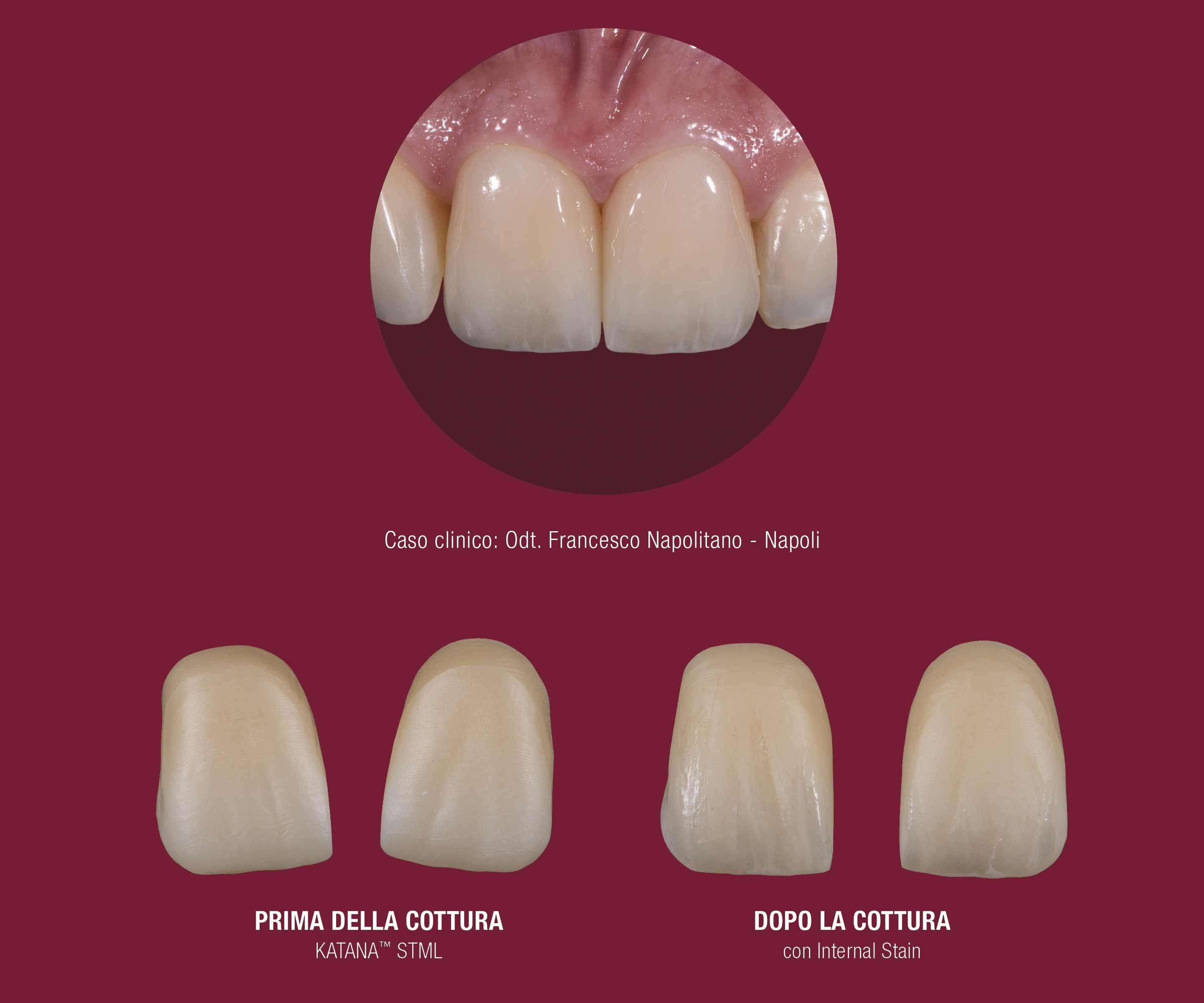 Le sole emulsioni traslucenti CZR™ FC Paste Stain creano effetti naturali di straordinaria bellezza quando utilizzate in combinazione alle formulazioni di ossido di zirconio KATANA™ STML e UTML. Anche dopo la cottura in forno, le masse CZR™ FC Paste Stain mantengono la tessitura di superficie impressa alle emulsioni con il pennello.