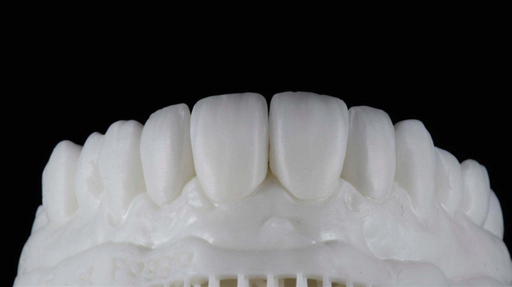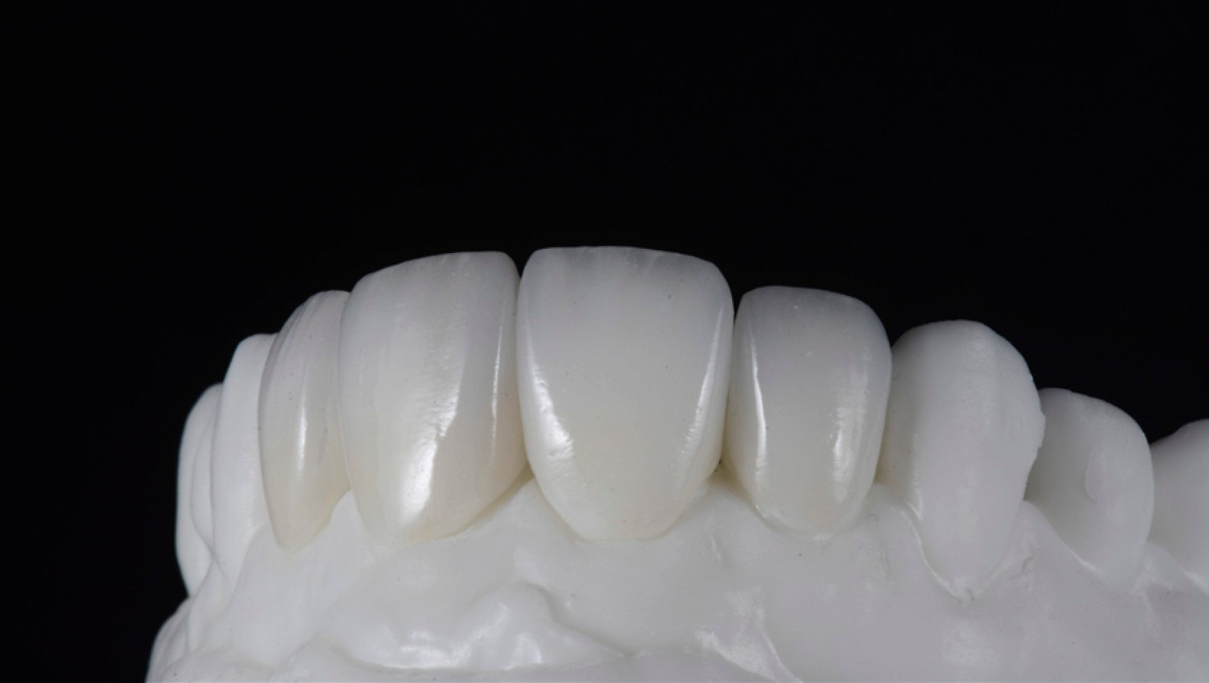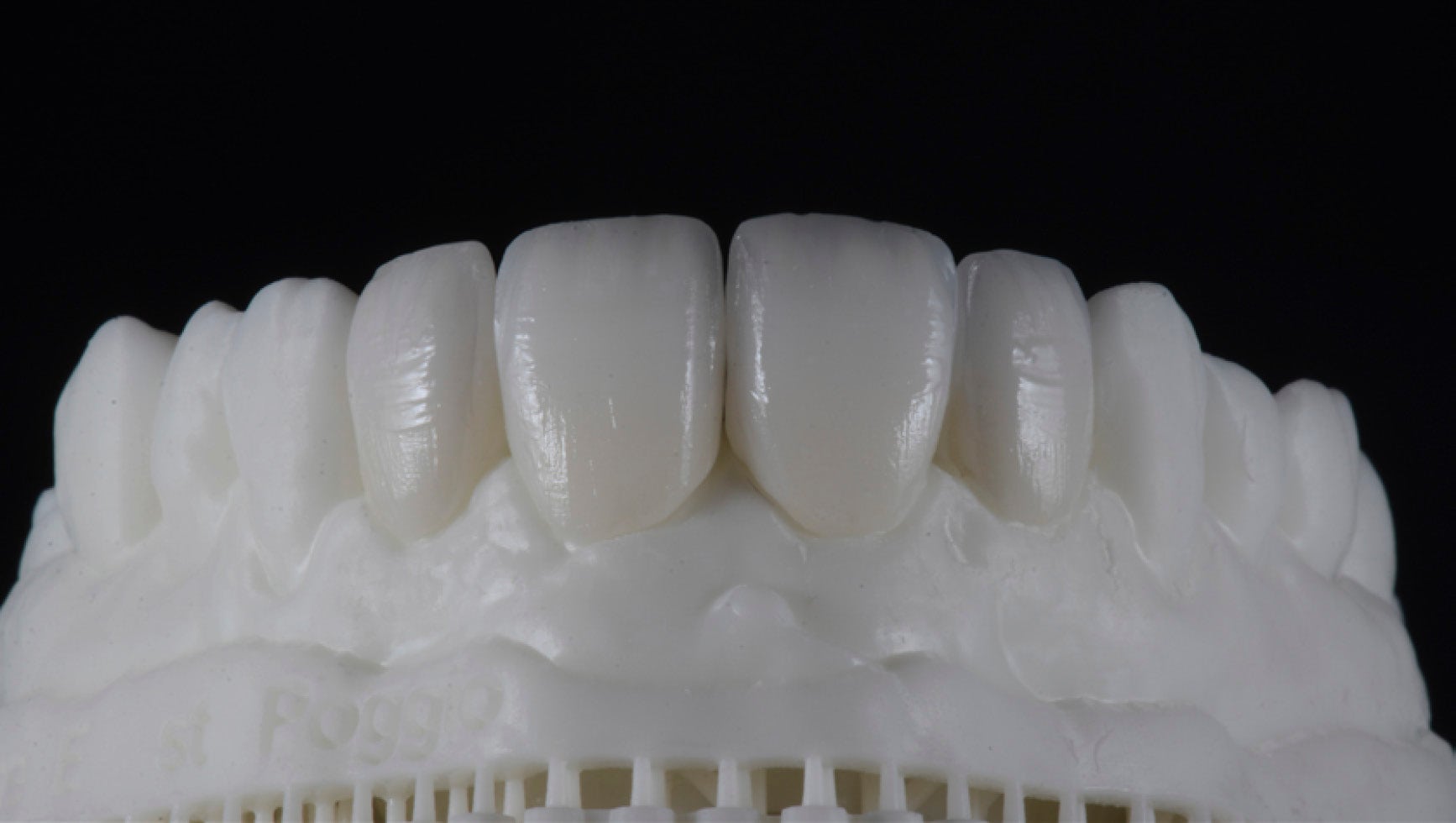 La scelta del materiale per le faccette estetiche di questo caso clinico ha rappresentato una sfida rilevante: il paziente richiedeva restauri estremamente bianchi e luminosi, nonostante la presenza di discromie localizzate e di una saturazione cromatica media del substrato dentale. A complicare ulteriormente la pianificazione, vi era la necessità di mantenere spessori minimi, in alcuni punti addirittura inferiori a 0,3 mm di ceramica.