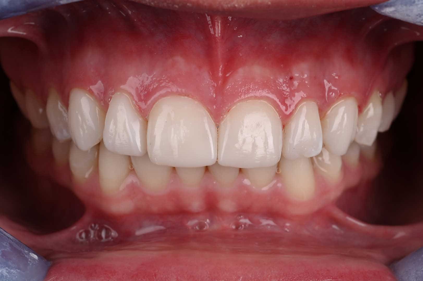 Il controllo a sei mesi (Figg. 21-22) non solo ha confermato la sopravvivenza dei restauri, ma evidenzia anche un’ottima salute gengivale, a dimostrazione della correttezza del profilo di emergenza e dell’elevata lucidabilità dei margini cervicali ottenuti con questa tecnica restaurativa.