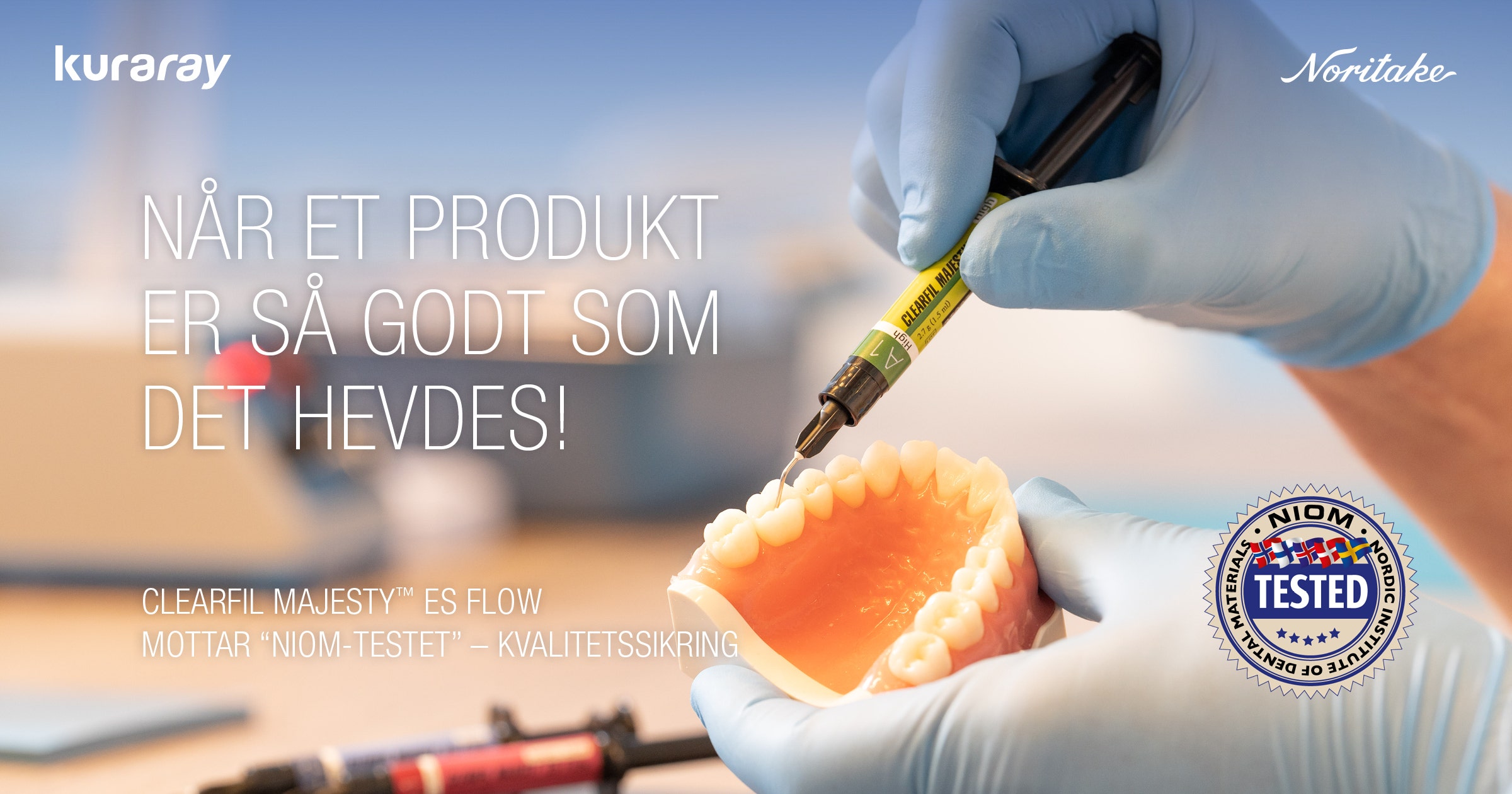 Clearfil Majesty™ ES Flow mottar “NIOM-testet” – kvalitetssikring CLEARFIL MAJESTY™ ES FLOWMOTTAR “NIOM-TESTET” – KVALITETSSIKRING Før man kan markedsføre en kompositt som et odontologisk restaureringsmateriale, må den også møte ISO-standard 4049:2019 - Odontologiske Polymerbaserte Restorative Materialer. Grunnet den enormt positive feedback Kuraray Noritake Dental Inc. mottok fra brukere av CLEARFIL MAJESTY™ ES Flow – produktene, ba vi NIOM (Nordisk Institutt for Odontologiske Materialer) om å uavhengig teste disse produktene innen den gjeldende ISO-standard. Selv om det ikke var obligatorisk eller nødvendig for Kuraray Noritake å få CLEARFIL MAJESTY™ ES Flow ytterligere testet, gjorde vår tro på og selvsikkerheten på kvaliteten i vårt eget produkt at vi også ville gjøre dette. NIOM møysommelig evaluerte CLEARFIL MAJESTY™ ES Flow i alle de tre viskositetene: Høy, medium og lav (fig. 1). Testingen og evalueringen som ble gjort inneholdt herdedybde, bøyestyrke, vannopptak og løselighet, og fargestabilitet etter bestråling og vannopptak. NIOM fant at alle tre viskositeter, inkludert i forskjellige farger av Vita-skalaen, møtte ISO-standardene. Vi er tilfredse med å ha gått den ekstra distansen og stolte over at en uavhengig tredjepart i NIOM bekreftet at vårt produkt møter de strenge ISO-standardene. Fig. 1: CLEARFIL MAJESTY™ ES Flow i sine tre forskjellige grader av viskositet, og således flyteegenskaper. INDIKASJONER FOR KLINISK BRUK Disse testresultatene er en ekstern bekreftelse for klinikerene at de kan trygt bruke denne populære flytende kompositt-serien slik som spesifisert av Kuraray Noritake Dental Inc, i sine «instructions for use», bruksanvisning. NIOM-testingen hva gjelder herdedybde viser at ved å legge den anbefalte tykkelsen av hvert lag, vil kompositten herde tilstrekkelig – noe som er helt essensielt for langtidsytelsen. I tillegg gir alle tre viskositetene nok mekanisk styrke og egenskaper hva gjelder vannopptak, til å også kunne brukes i restaureringer av okklusalflater posteriort, i premolarer og molarer. Dette betyr at materialene egner seg godt til mange indikasjonsområder, som alle klassifiseringer av fyllinger, samt reparasjoner av kompositt og sementering (Fig. 2). Fig. 2: De tre varianter av CLEARFIL MAJESTY™ ES Flow og anbefalte indikasjonsområder. FLOTT ESTETIKK OG GODE HÅNDTERINGSEGENSKAPER I tillegg til disse gode og velbalanserte mekaniske egenskapene, er CLEARFIL MAJESTY™ ES Flow enkel i bruk grunnet sin innovative appliseringsform fra sprøyte. Dette gjør at man unngår luftblærer, lett kan plassere og anpasse materialet, unngår klebrighet og enkelt kan polere. Materialet dekker nok av fargeskalaen (Fig. 3) og med sin gjennomlysningsevne gir dette en kamelon-effekt slik at det blender pent inn med omliggende tannsubstans, noe som gir et naturlig utseende og pen morfologi. Både estetikk og håndteringsegenskaper har fått gode til svært gode anmeldelser av konsulenter innen dental rådgivning, da gjennom klinisk evaluering. Fig. 3: Oversikt over fargeskalen per hver enkelt viskositet. NIOM bekrefter også de gode estetiske egenskapene gjennom instituttets testmetoder for fargestabilitet etter vannopptak og bestråling. Disse viser CLEARFIL MAJESTY™ ES Flow sin stabilitet over tid, noe som er viktig for materialets overlevelsesprognose i munnen og langtidsestetikk. Velg et pålitelig, høykvalitets, flytende, direkte komposittmateriale som tåler strenge testkrav. Klikk her for mer informasjon om CLEARFIL MAJESTY™ ES Flow. 23. sep. 2024 CLEARFIL MAJESTY ES Flow Se produktet Abonner på vårt nyhetsbrev Gjør som tusenvis av andre som arbeider med tannhelse og motta gratis informasjon som kan hjelpe deg i din karriere. Vi vil ikke sende ut spam eller dele din emailadresse med andre.