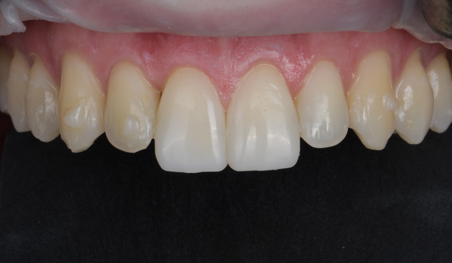 Fig. 6. Nice shade match leading to a smooth blend-in with the surrounding natural tooth structure.