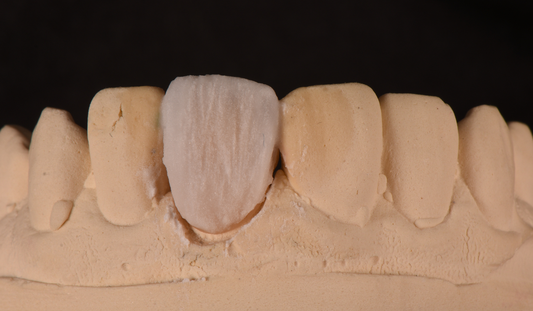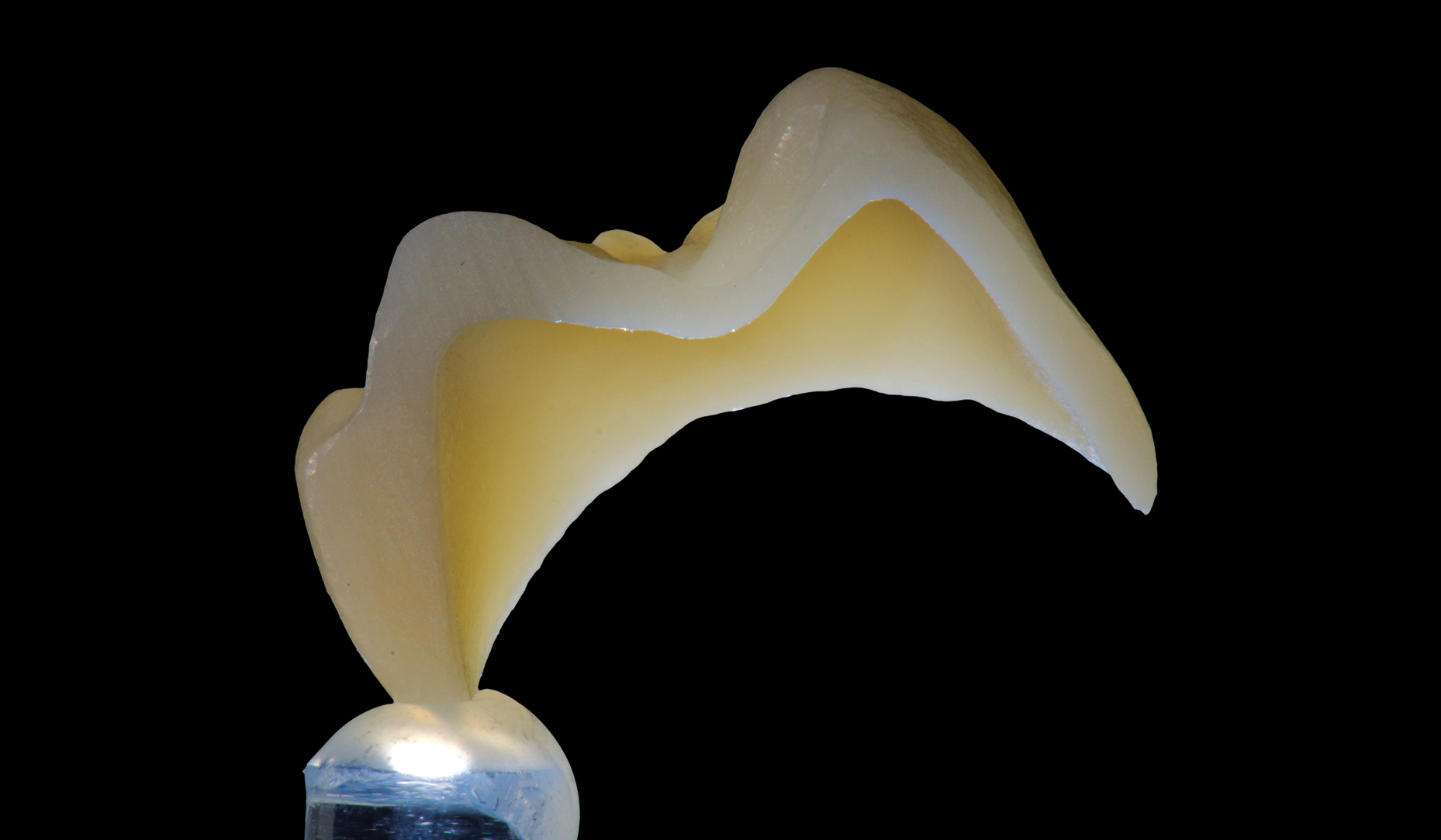Rys. 2: Grubość ścianek uzupełnień cyrkonowych może wynosić od 0,4 do 0,6 mm w przypadku licówek w odcinku przednim…