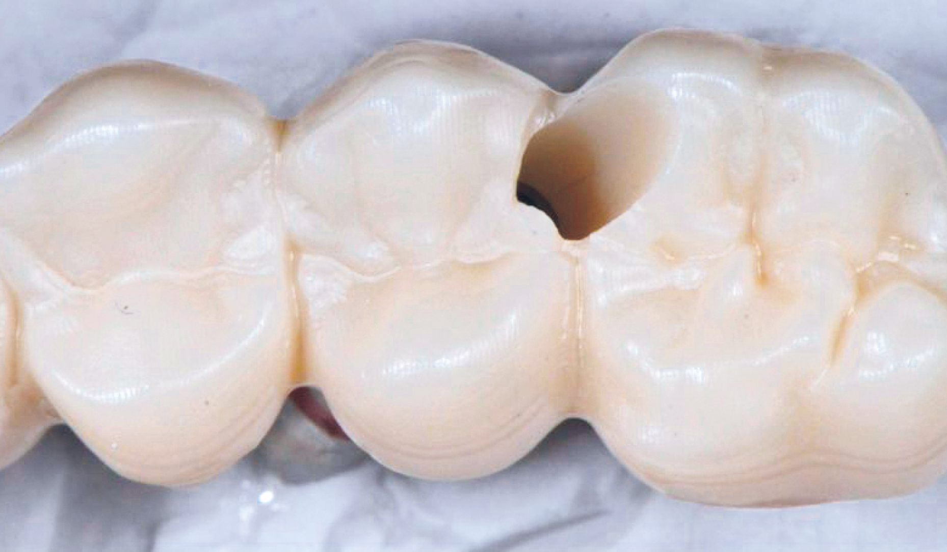 Rys. 7: … struktura została wykończona porcelaną CERABIEN™ ZR. Zaleca się wybór koloru ton jaśniejszego niż kolor docelowy.