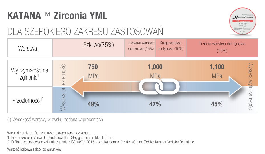 W czerwcu 2021 r. firma Kuraray Noritake Dental Inc. wprowadziła na rynek kolejny dysk cyrkonowy nowej generacji - KATANA™ Zirconia YML. Jest to odpowiedź na rosnące zapotrzebowanie na uniwersalny tlenek cyrkonu o wysokim potencjale estetycznym. Nowe dyski oferują gradację koloru, przezierności i wytrzymałości na zginanie - z najwyższą przeziernością w warstwie szkliwnej i najwyższą wytrzymałością na zginanie w dolnej warstwie dentynowej.