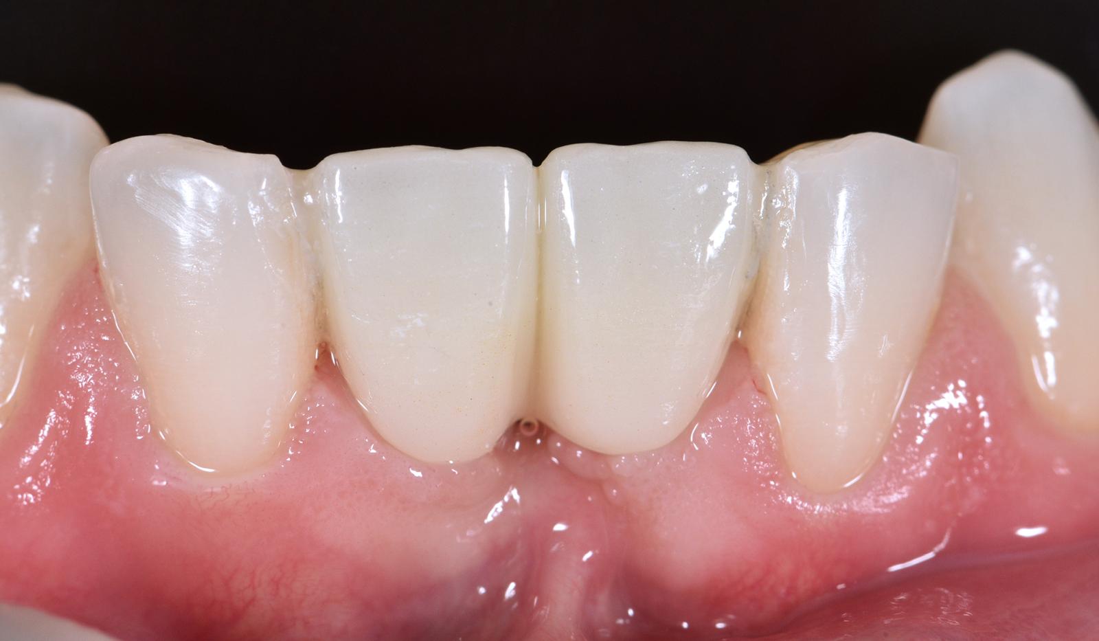 Decizia finală a fost realizarea unei noi punți adezive, îmbunătățită atât din punct de vedere al designului, cât și al culorii, utilizând zirconiu multistrat pentru a obține un rezultat cu aspect natural.