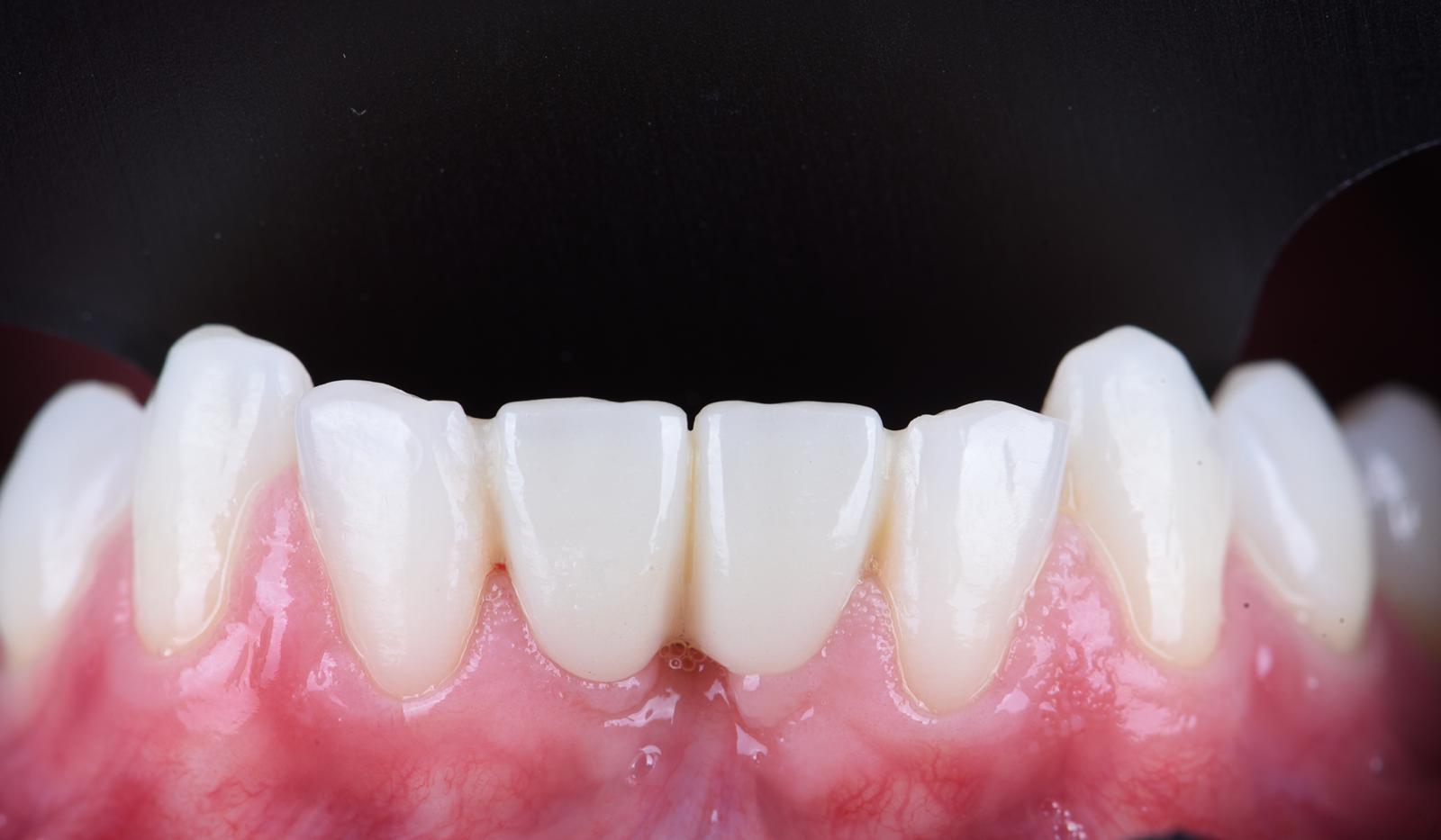 Această nouă punte, realizată cu zirconiu multistrat, de estetică superioară și cimentată folosind un protocol strict, a obținut un rezultat perfect integrat și natural, fără a recurge la opțiuni mai invazive (gradient terapeutic). În plus, această abordare invită echipa de restaurare să ia în considerare tendințele emergente în proiectarea punților adezive, în special opțiunea de punți cantilever cu un singur retainer de fiecare parte, care ar putea fi luate în considerare în cazuri similare în viitor.