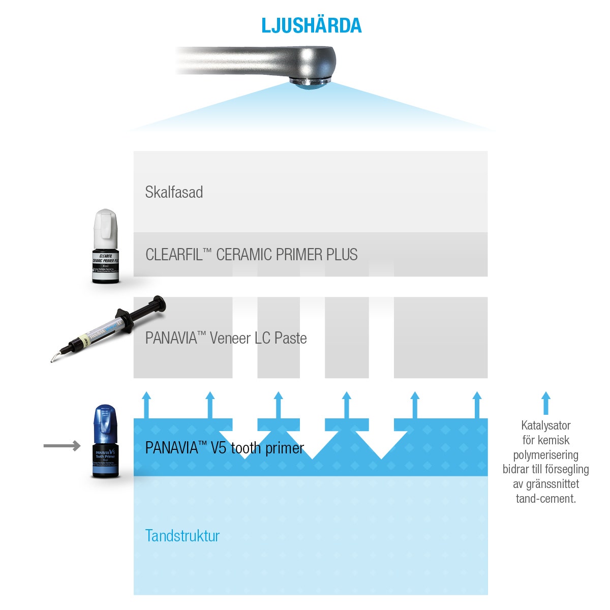 News Feature PANAVIA Veneer LC - INNOVATIV HÄRDNINGSTEKNOLOGI INNOVATIV HÄRDNINGSTEKNOLOGIPANAVIA™ Veneer LC är ett ljushärdande cement som kombinerar flera teknologier för att ge dig högsta möjligabindningsstyrka. FÖRSEGLING AV GRÄNSSNITTETEn modifierad teknologi för kontakthärdning används för att ge en längre arbetstid men bibehålla den höga bindningsstyrka som PANAVIA™ är välkänt för. PANAVIA™ Veneer LC, i kombination med PANAVIA™ V5 Tooth Primer, bidrar med ett viktigt kemiskt element till ett ljushärdande cement. När PANAVIA™ Veneer LC pastan kommer i kontakt med självetsande primer PANAVIA™ V5 Tooth Primer, förseglar den för tandstruktur (dentin och emalj) det tand-adhesiva gränssnittet. med den. Denna ”milda” kontakthärdning initierar polymeriseringen endast vid det adhesiva gränssnittet och åstadkommer en stark omedelbar bindning till emalj och dentin, men påverkar inte stelningen av cementet och därför inte heller arbetstiden. ARBETSTIDVid procedurer med cementering, är det flera externa faktorer som påverkar arbetstiden. Teknologin bakom PANAVIA™ Veneer LC tar hänsyn till dessa faktorer. Teknologin för kontakthärdning ger en omedelbar försegling av gränssnittet mot tanden. Grunden för höga bindningsstyrkor. Ljushärdningsteknologin ger dig en arbetstid på 200 sekunder under omgivande ljus* innan PVLC börjar förlora sin ideala plasticitet för formning. Under dessa 200 sekunder kan du bekvämt placera och positionera (ett flertal) fasader. Den slutliga polymeriseringen sker vid belysning med härdljuslampan och låter cementet härda fullständigt. *Omgivande ljus: cirka 8 000 lux 1 sep. 2022 VENEERS panavia zirconia veneers laminate veneer veneer Panavia Veneer LC Veneer treatment Anmäl dig för nyheter Gå med tusentals tandläkare och få gratis råd som kan hjälpa dig och din karriär. Vi kommer inte skräppost eller dela din e-post.